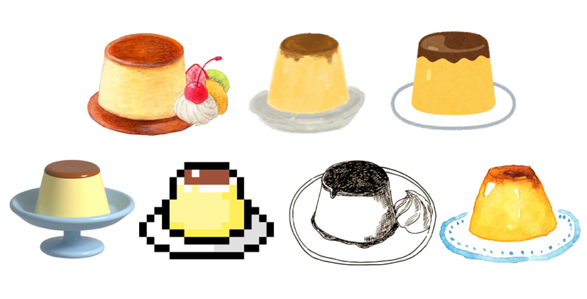 こちらの画像を見ると、同じプリンのイラストでもそれぞれ異なった印象を受けますよね。
