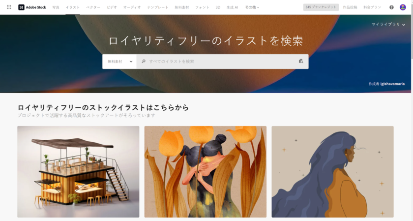• 世界的なデザインツールを提供するAdobeの素材サイトで、イラストの他に写真素材や動画素材も提供