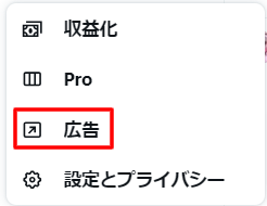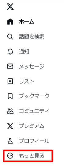 ①広告を配信したいXアカウントにログインし、左側メニューの「もっと見る」をクリック
