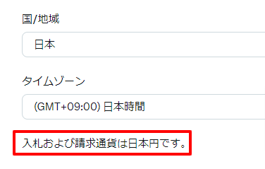 なお、入札や請求などで使用される通貨は、選択した「国/地域」によって決まります。