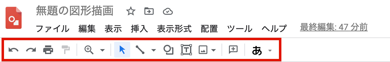 描画する際は上部にあるツールを使います。