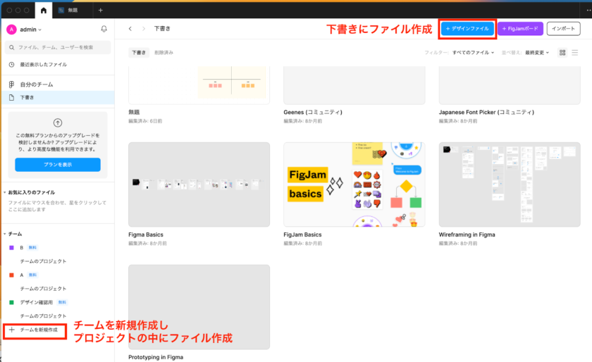 アカウントを作成したらアプリもしくはブラウザ上でFigmaを開きます。