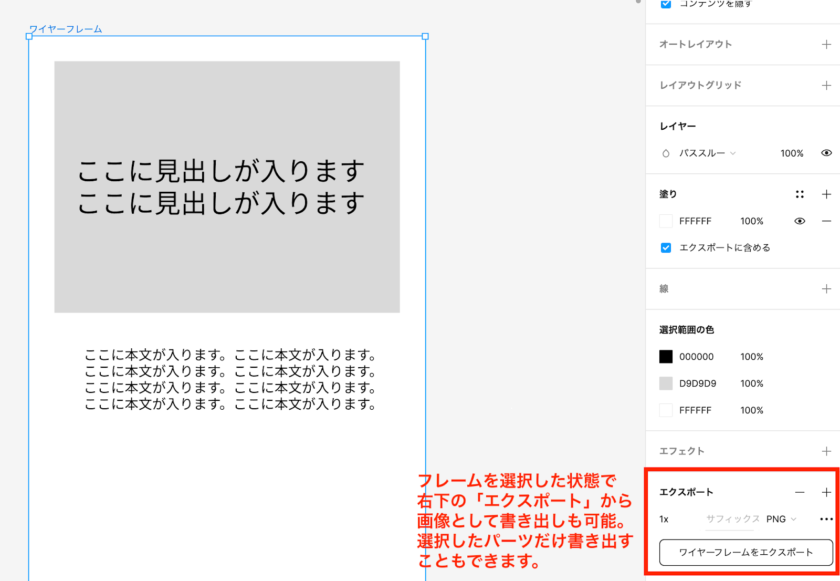 画像で共有したいときは右下の「エクスポート」から書き出すことができます。
