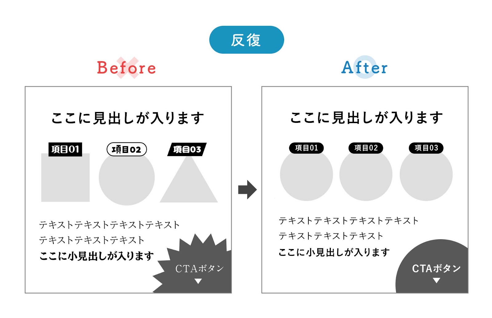 とある特徴や要素を繰り返し登場させることで、デザインに一貫性を持たせるのが「反復」です。
