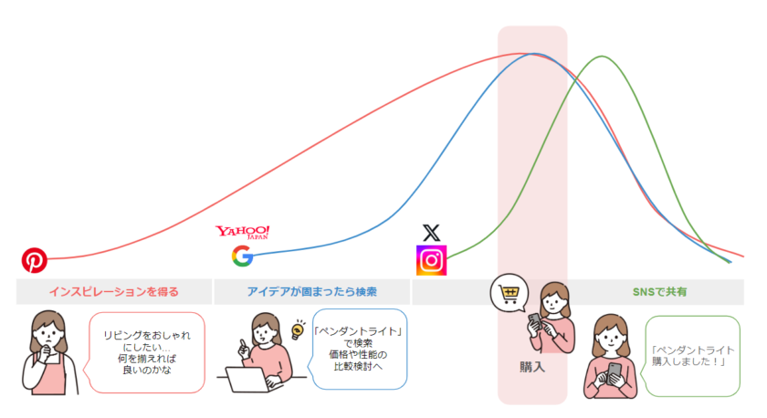 そのため、コンバージョンウィンドウの設定期間を短く設定していると、商品を検討する最も初期の段階でPinterestアドと接点を持っていたユーザーのコンバージョン計測を逃してしまう可能性が考えられます。