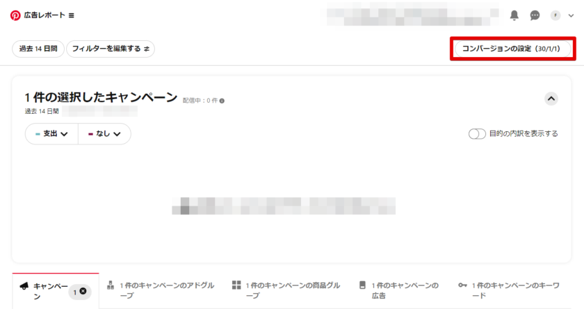 - 画面上部の「コンバージョンの設定」から設定・変更
