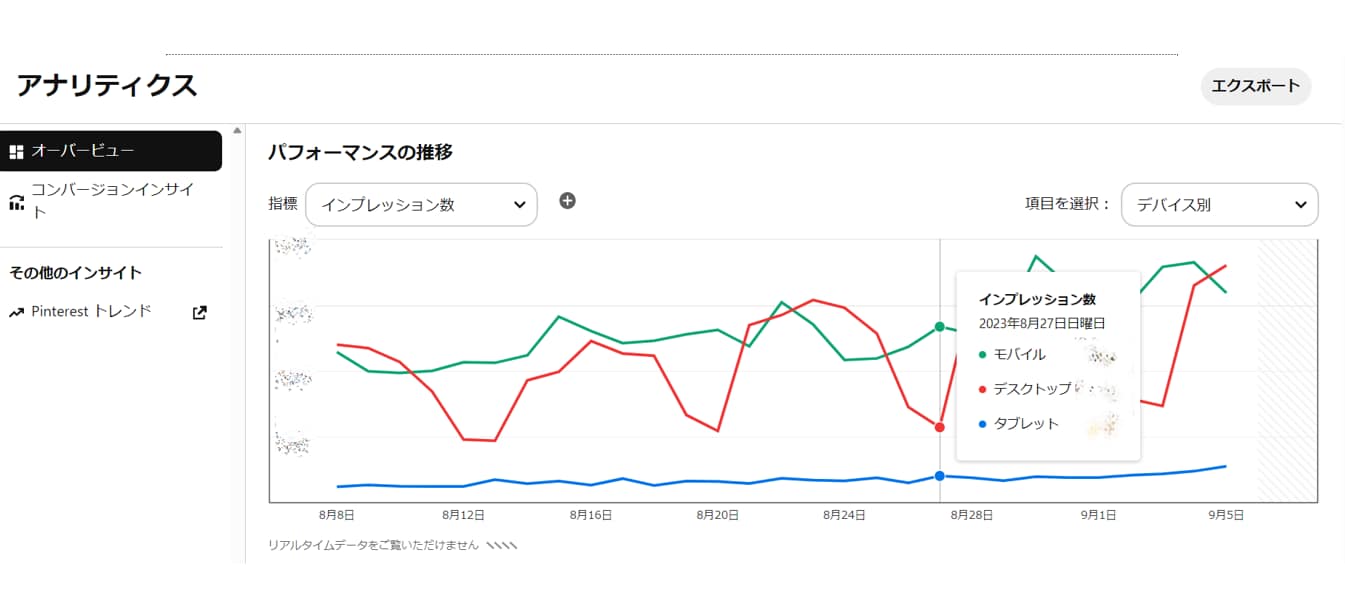例えば、インプレッション数のほとんどがモバイルデバイスの場合、表示されるピンのアスペクト比を縦長で作成するなど、モバイル向けに最適化したコンテンツ作りを行うこともできますね。