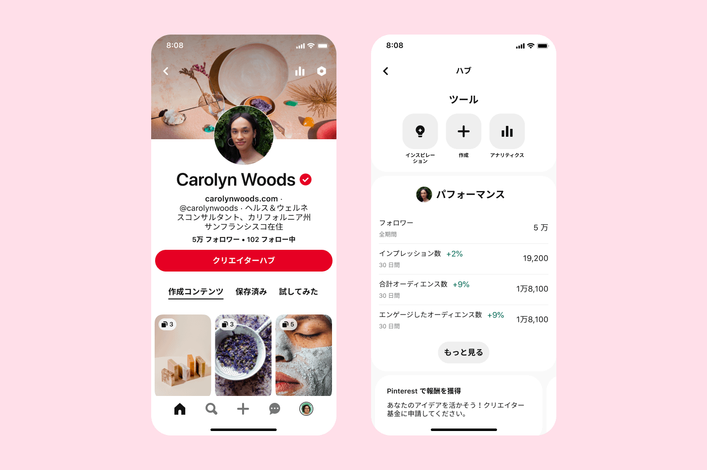 クリエイターハブは、オーディエンス、パフォーマンスなどピンのアナリティクスを確認することができるだけではなく、トレンドの詳細を把握するために必要なツール、ヒント、インサイトを把握できます。