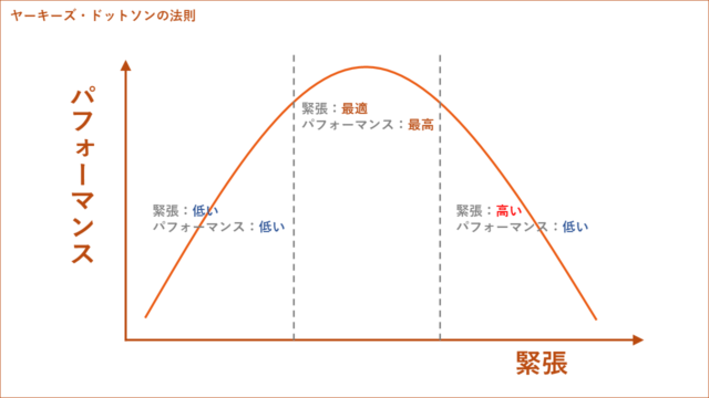 しかしながら、適度な緊張は集中力を高め、パフォーマンスを最大化させる効果があります。これは「ヤーキーズ・ドットソンの法則」と呼ばれる心理学の法則で知られています。