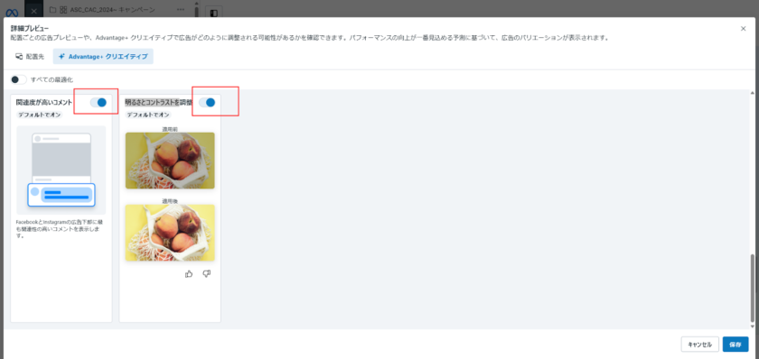 広告作成時にON/OFFを選択できるものが多いですが、一部はユーザーがOFFにしない限りデフォルトでONになるエンハンスがあるので注意しましょう。