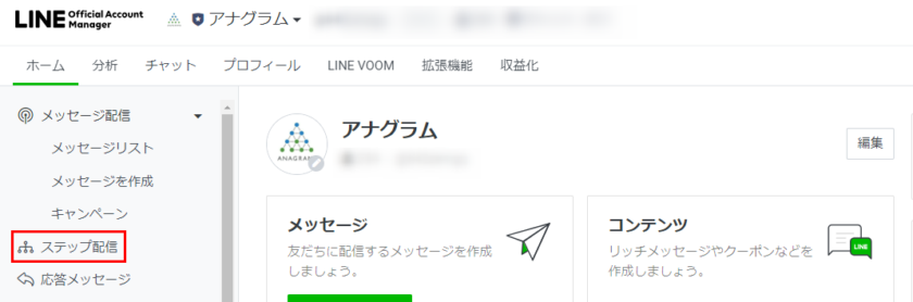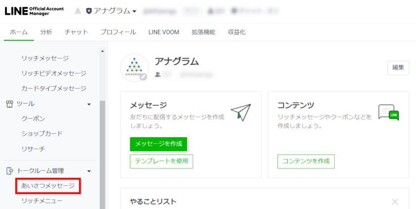 LINE Official Account Managerのホーム画面より設定します。
