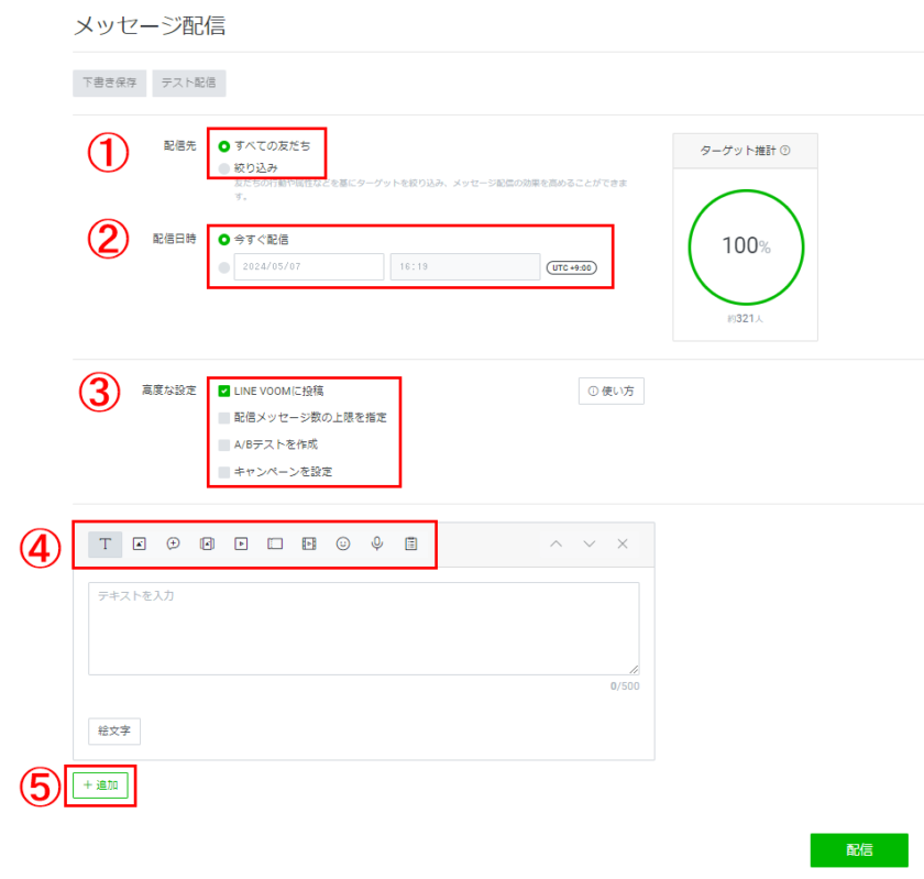 メッセージ配信の設定画面が開きます。