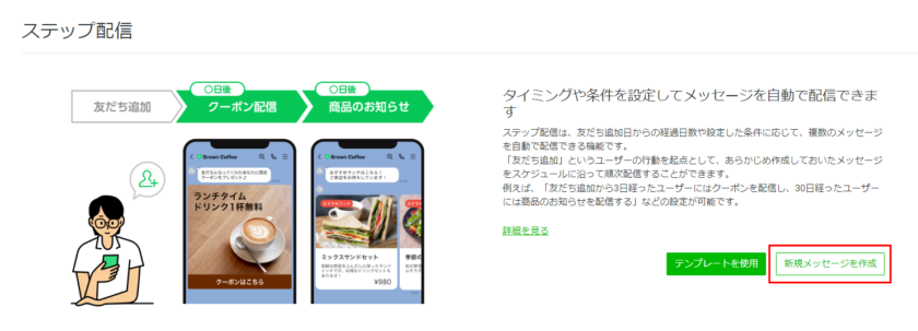 ステップ配信とは、友だち追加した日などの特定の条件を起点に、あらかじめ用意しておいた複数のメッセージを順番に自動で送信する機能です。