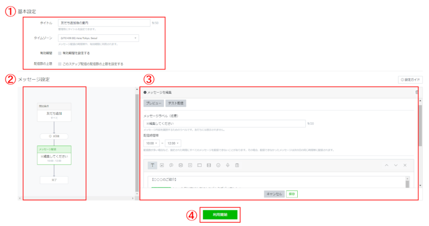 ④メッセージ設定