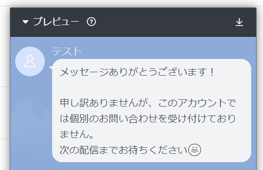 | 一律応答 | ユーザーから受け取ったすべてのメッセージに対して返信 |
