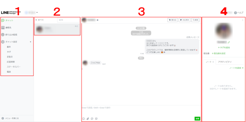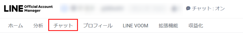 LINE Official Account Managerの上部タブ [ チャット ] を選択し、チャットの画面を開きます。
