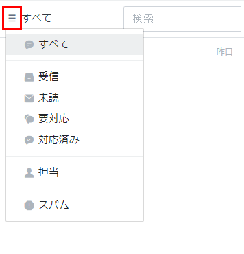 | 受信 | 「対応済み」または「スパム」以外のチャットルーム |
