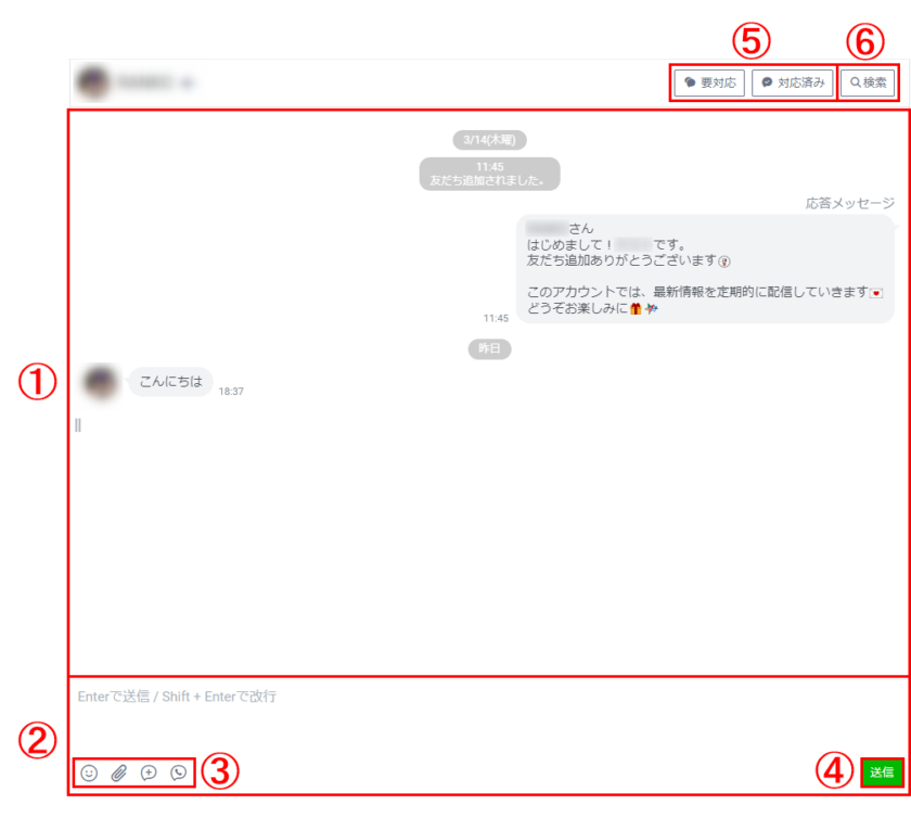 | ⑤要対応・対応済み | チャットの状態を「要対応」または「対応済み」に振り分ける | |