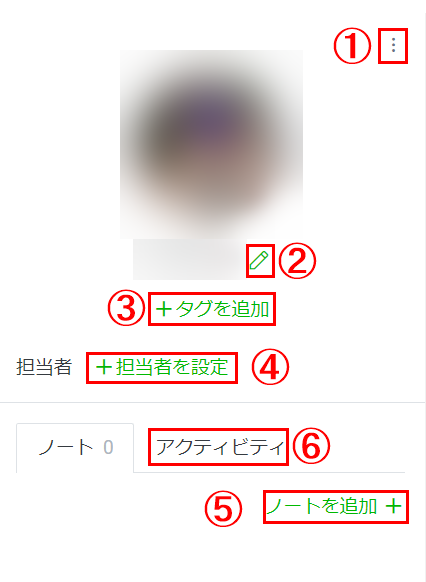 | ⑤ノート | ユーザーの情報をメモとして追加できる |