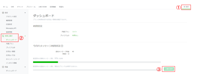 ③今月のメッセージ利用状況の [ 上限を変更 ] より設定
