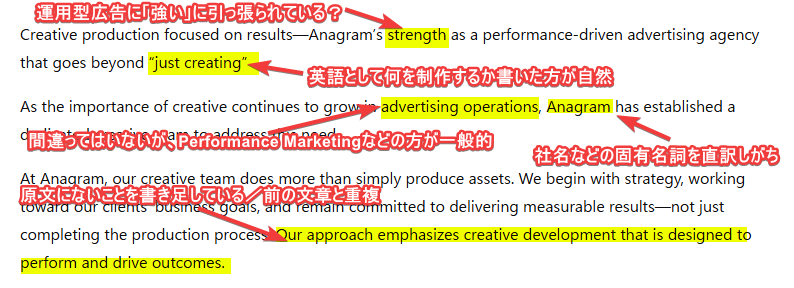 この文章をChatGPTに「英語に翻訳して」と頼んだときに、実際に違和感があった箇所がいくつかありました。