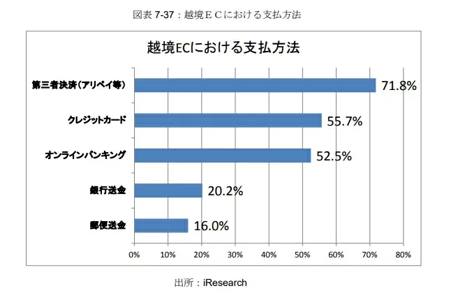 一方、中国ではAliPay、WeChatPayといったモバイル決済サービスが圧倒的なシェアを占めています。