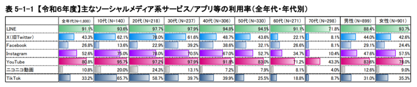 総務省の調査によると、日本国内におけるLINEの利用率は全年代で91.1%と圧倒的です。