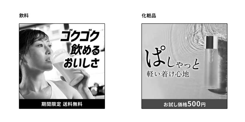 食品であれば食感、飲料であれば喉越し、化粧品であれば着け心地など……。音や質感は動画が1番伝わりやすいですが、画像の場合も効果音やテクスチャーをあしらうことで、臨場感を演出することができます。