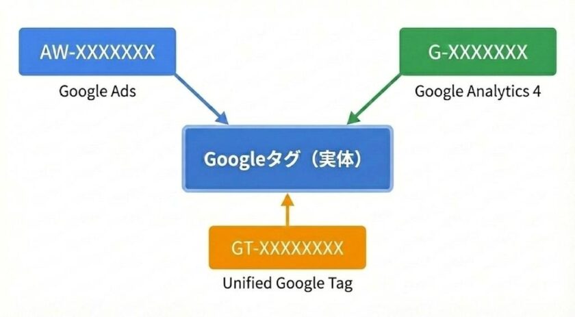 Googleタグを扱う際に避けて通れないのが、タグIDの理解です。「G」「AW」「GT」など、さまざまな形式のID が存在しますが、それぞれの意味と使い分けを押さえておけば、設定時に迷うことはありません。