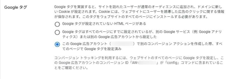 1. Google広告の管理画面でコンバージョンアクションを作成し、タグを取得