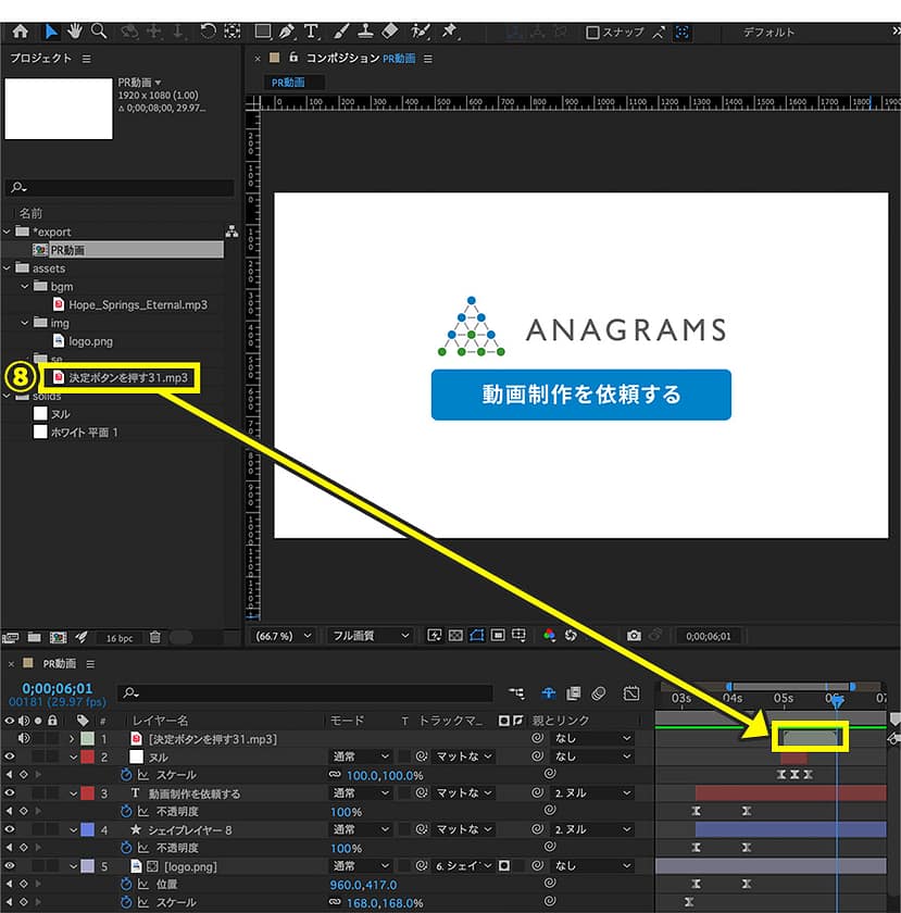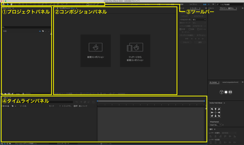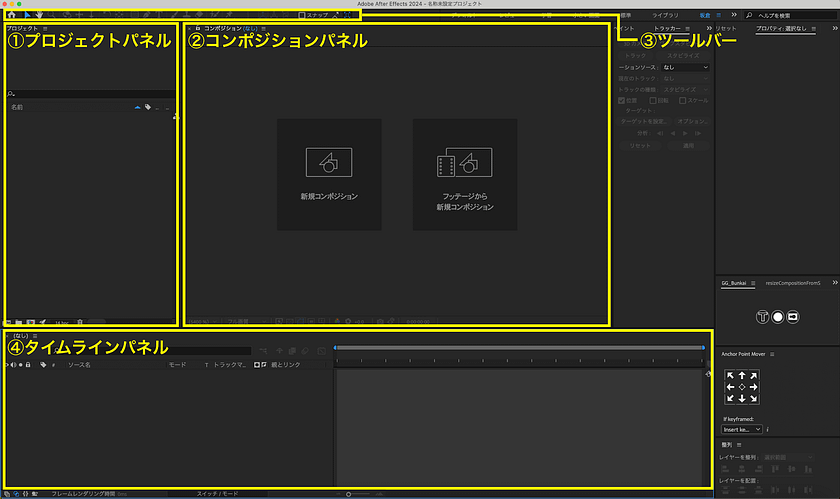 After Effectsの操作画面の説明