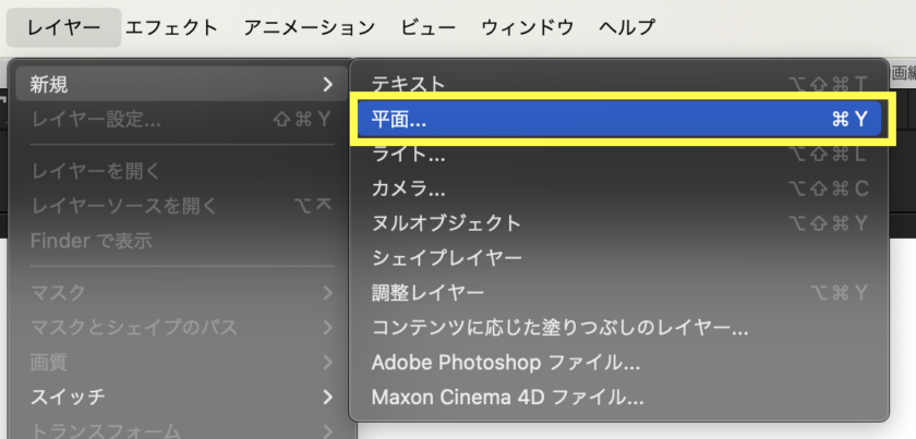 背景の役割を果たす、平面と呼ばれるレイヤーを追加します。