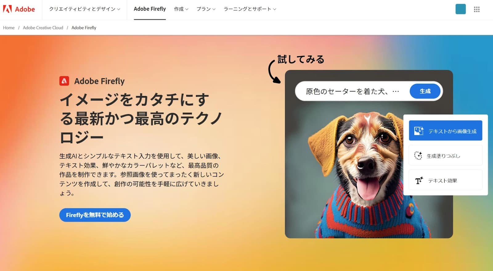 Adobe Firefly|テキストプロンプトから画像を作成