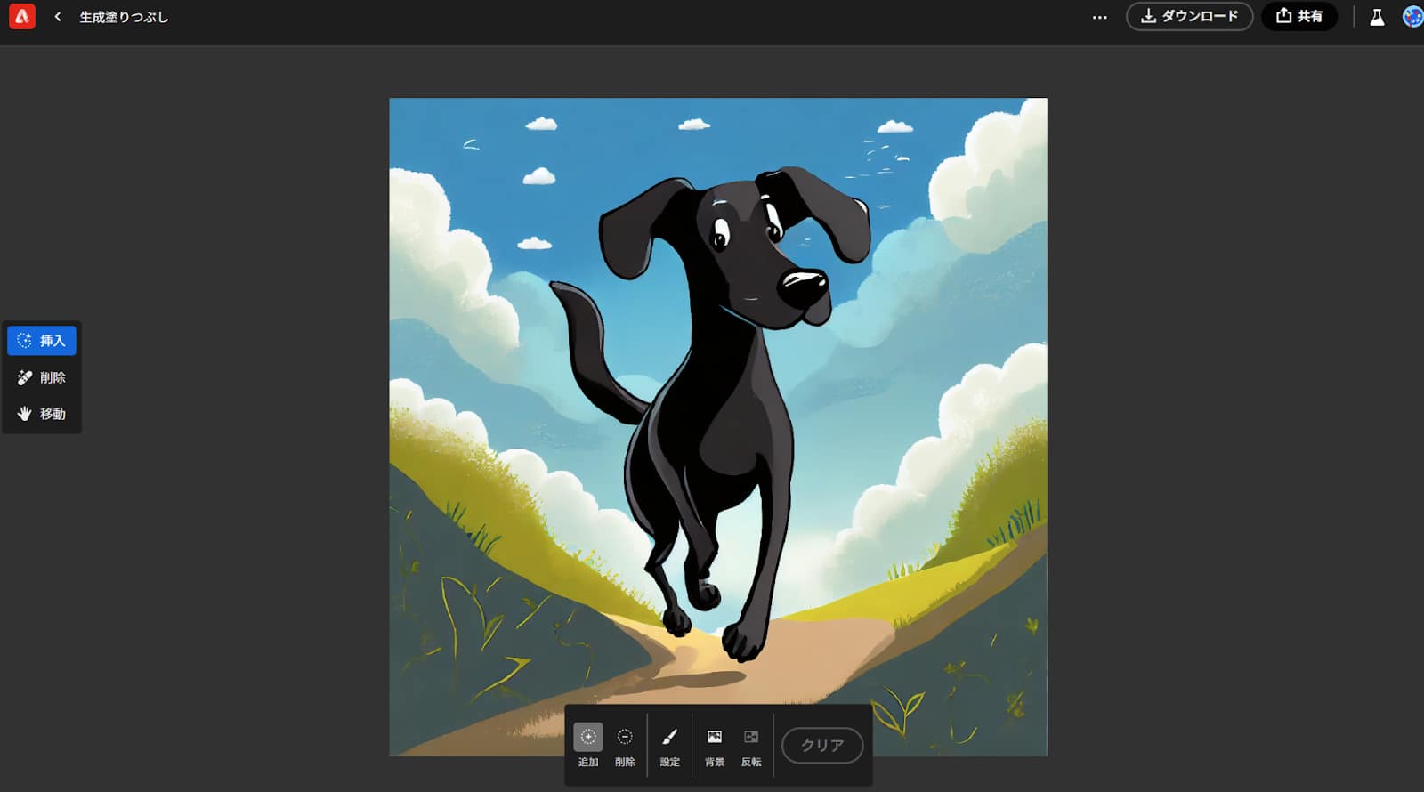 | 生成塗りつぶし【画像例あり】 | ブラシを使ってオブジェクトの削除や新しいオブジェクトの描画ができる |
