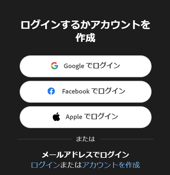 右上の「ログイン」ボタンを押下し、ログインまたは新規アカウントを作成します。既にアカウントをお持ちの方はログインするとすぐに利用できる状態となります。Webブラウザ上でログインするだけなので非常に簡単です。