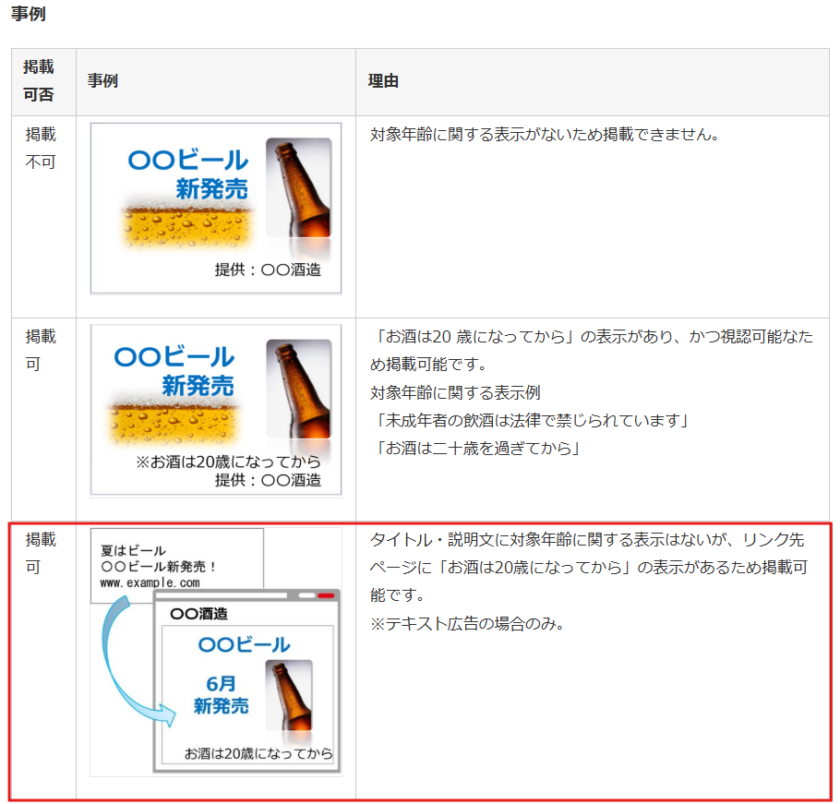 参考:アルコール飲料 – Yahoo!広告 掲載基準