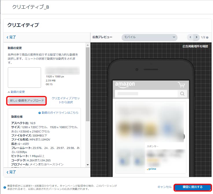 Amazonスポンサーブランド動画広告は掲載前に審査があり、内容によっては審査落ちで掲載できない場合があります。