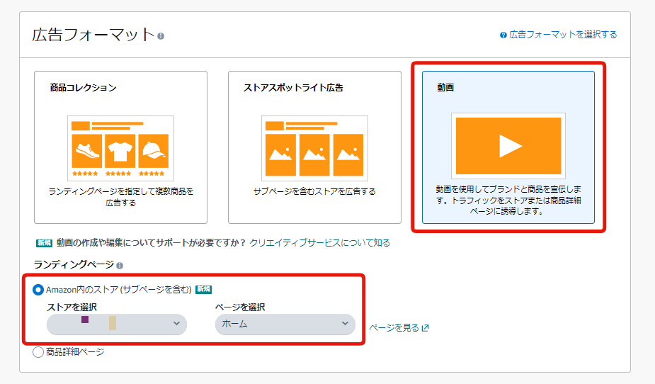 以前は動画広告のリンク先は広告掲載商品の商品詳細ページのみでしたが、2022年10月からはAmazonストアページもリンク先に指定できるようになりました。