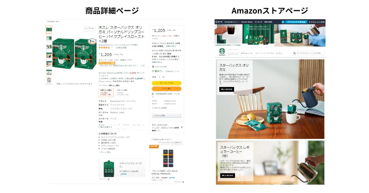 商品詳細ページとAmazonストア内ページの違い