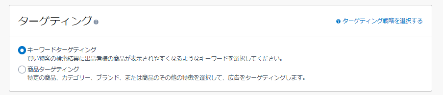ランディングページに「Amazon内のストア」を選択した場合は、ターゲティングを設定します。