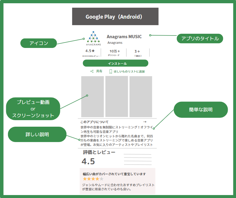 さらに、せっかくアプリストアまでたどり着いたお客様にインストールしてもらうには、ストアページでアプリの良さが伝わる必要があります。
