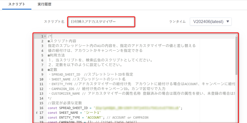 Yahoo!広告 スクリプトで新規作成する際に、もともとスクリプトの記載がありますがこのスクリプトを削除せずに、自分が用意したスクリプトを貼り付けるとエラーが起きます。