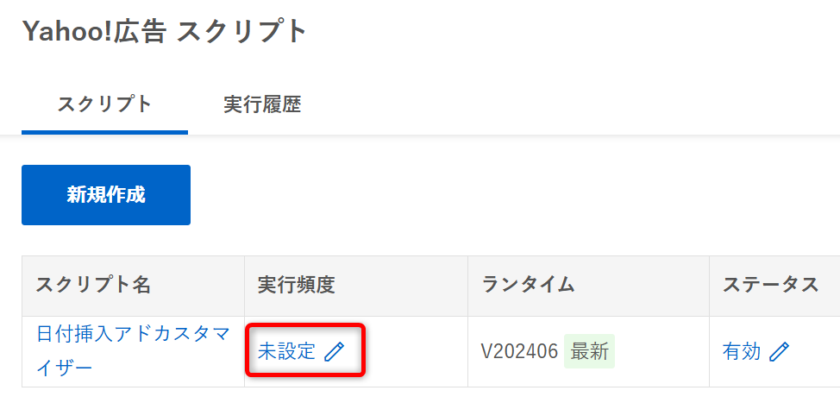 頻度を「毎日 0:00」にして保存したらYahoo!広告 スクリプトでの実装設定は完了です。
