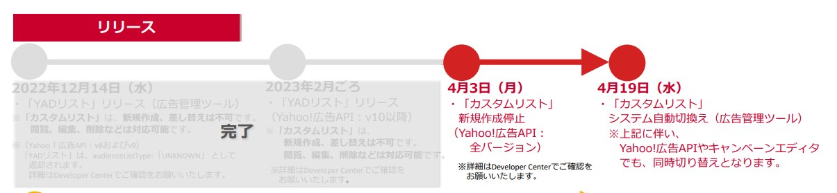 2022年12月14日(水)、広告管理ツールで新しいリスト「オーディエンスリスト(Yahoo! Audience Discovery)」の提供を開始し、2023年4月3日(月)には「オーディエンスリスト(カスタム)」の新規作成ができなくなりました。