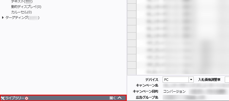 YDAのキャンペーンエディターを開き、「ライブラリー」をクリックします。
