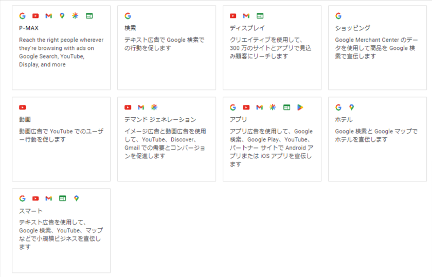 Google広告は広告の目的に応じてさまざまな機能が用意されています。