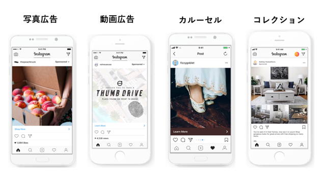 | 動画広告 | 動きと音声でユーザーの注目を集められ、写真だけでは十分に伝えられない商品の特徴などを紹介できます。フィードやストーリーズ、リールに配信できます。 |