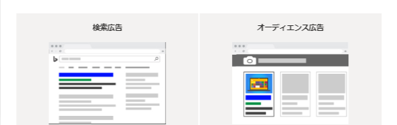 Microsoft広告では「検索広告」と「オーディエンス広告」の2種類の広告が提供されています。