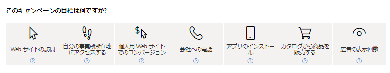 各広告の種類で、さまざまなキャンペーンの目標が用意されており、目的にあった広告配信の設定を行えます。