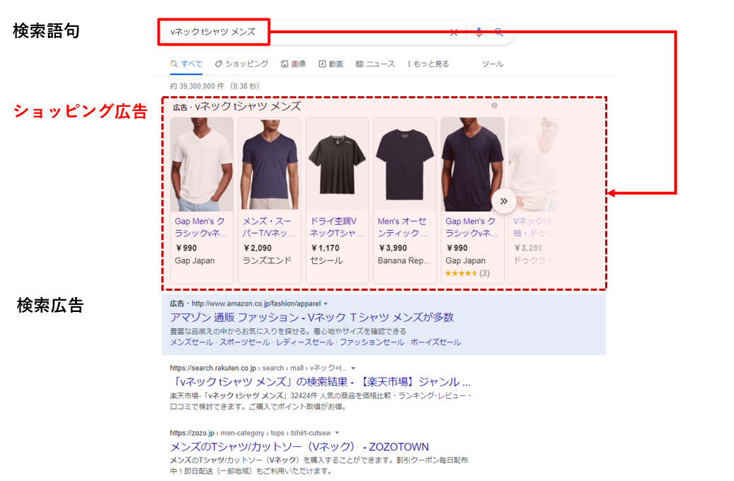 ショッピング広告は、おもにGoogle検索結果に掲載される広告で、特定の商品について画像・価格・在庫状況といった詳細情報を表示できます。